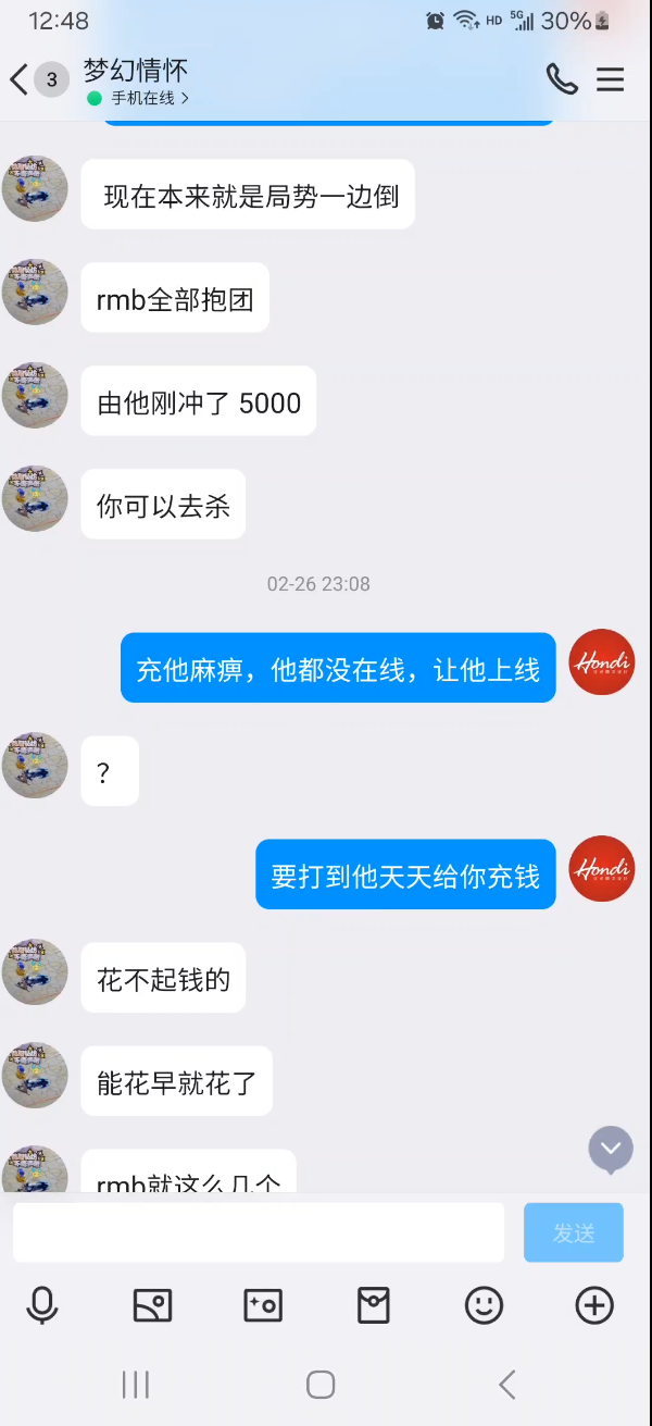 背后骂玩家,指挥玩家搞事情,原因很简单,充钱玩家不继续充钱了
