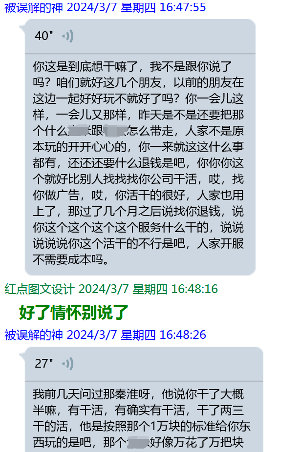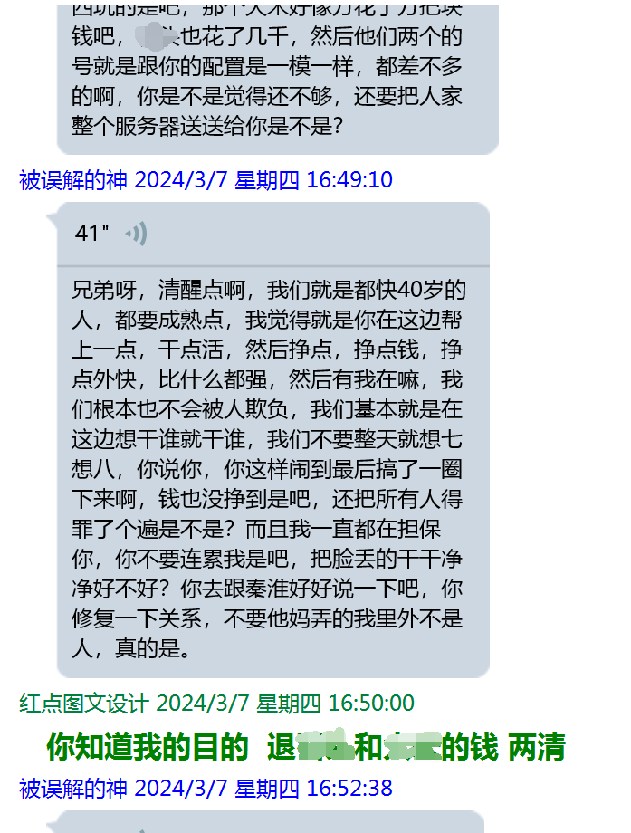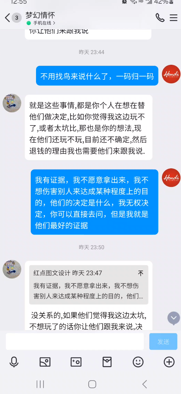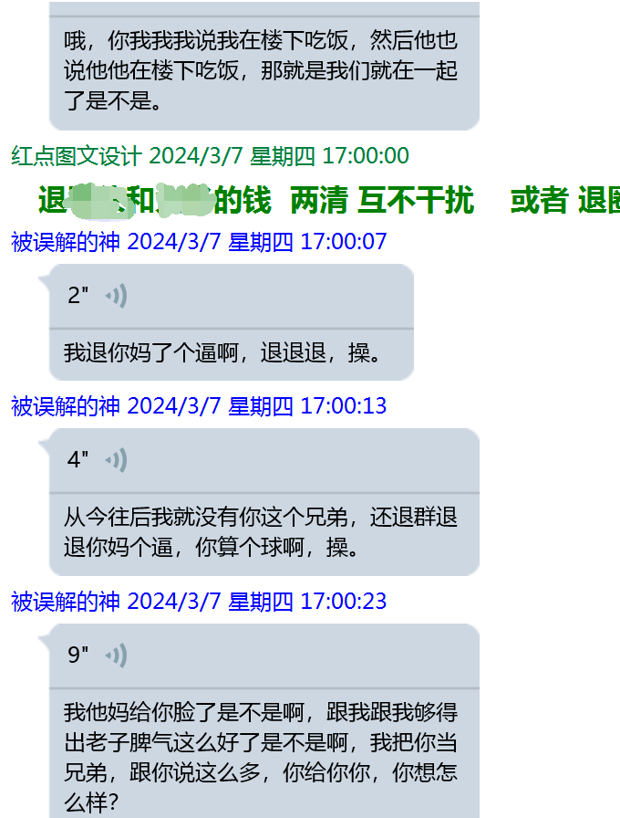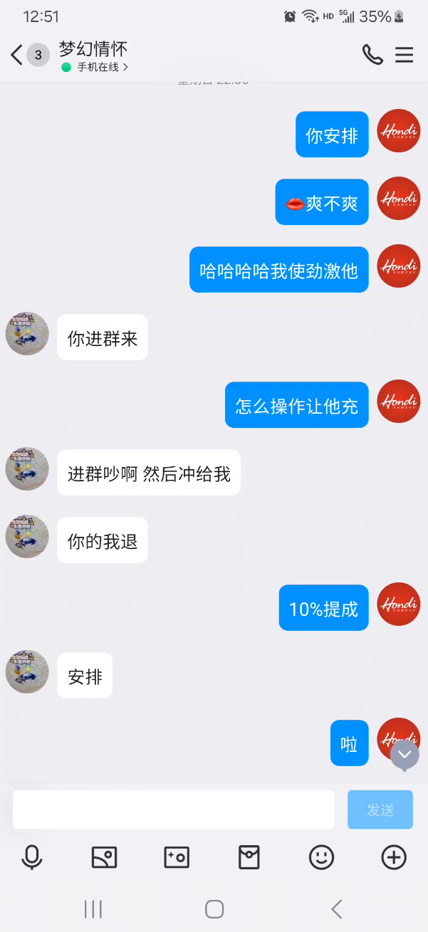 被拆穿后,爆料人要求给被骗钱的朋友退款(在爆料人来之前冲的),直接狗急跳墙。先以“朋友”软硬皆施,再让“群主”解释。