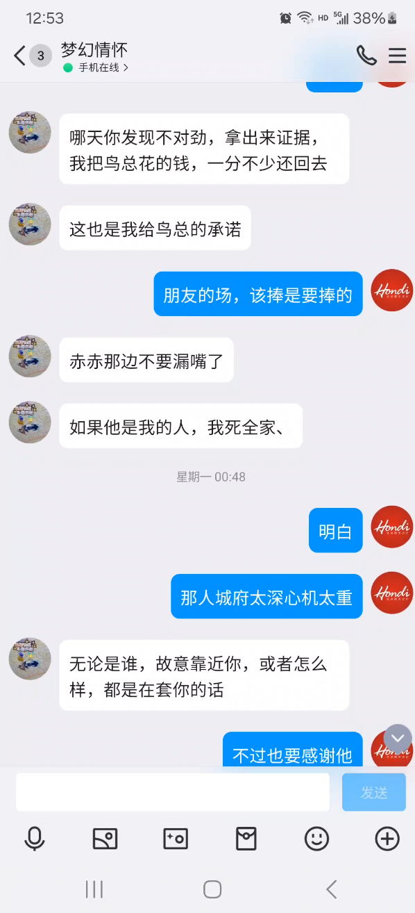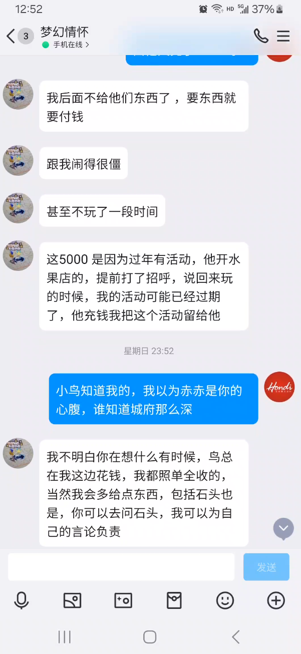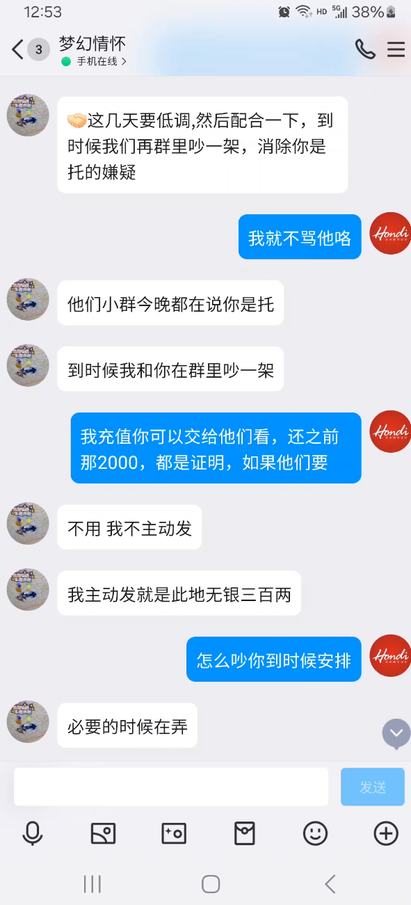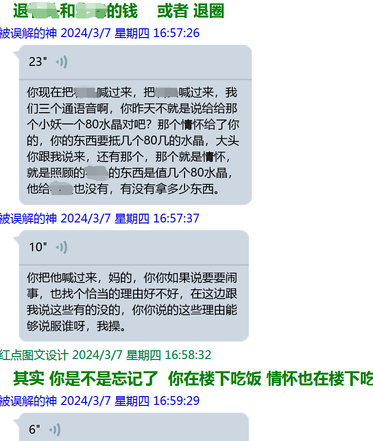 做冲榜活动,安排其他拖抢榜逼充值被看穿,其实就是骗熟人钱,此处给爆料人打了语音1电话,试图用“朋友”关系缓和气氛